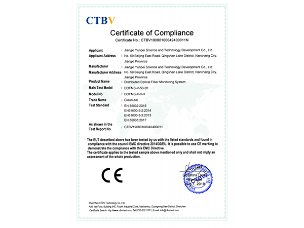 我司全系列产品经国家部门检测,全部通过第三方计量检测认证,标志着我司光纤和雷达产品在可靠性、稳定性方面获得国家行业认可。